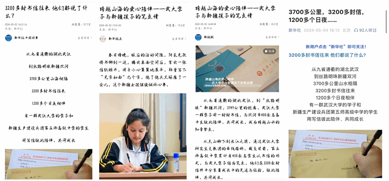 的学子和新疆生产建设兵团第五师高级中学的学生用写信彼此陪伴、共同成长,用一束束微光点燃希望。