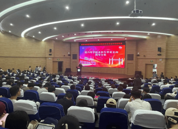 随后,院党委副书记李好和副院长孙祥分别讲话。李好以完整而详尽的数据向现场同学详细介绍了近六年学院本科生毕业去向,希望同学们从自身的兴趣爱好出发,无悔选择,踔厉奋发。孙祥鼓励同学们积极主动去获取信息,加强与专业老师的沟通交流,无论选择结果如何,永远积极向前。