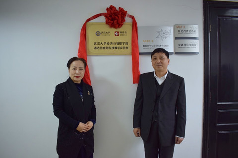 捐赠仪式前,姜星莉书记和黄山先生还共同为“通达信金融科技教学实验室”揭牌,并参观了实验室。双方还共建了海棠书屋