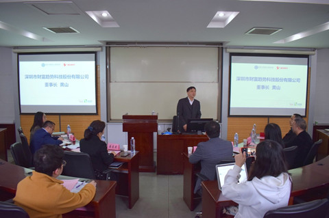 姜星莉首先代表学院致欢迎辞。她向深圳市财富趋势科技股份有限公司表示衷心的感谢,向参加活动的黄山董事长表示欢迎。“黄山校友以实际行动支持了学院的人才培养、学科建设与科学研究,充分体现了黄山校友对母校的情怀”。她期望双方进一步展开深入持续合作,实现双方共建互赢,助力中国金融科技发展。