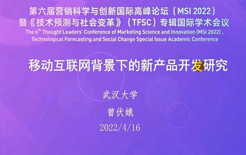2022年4月16日至17日,学院市场营销与旅游管理系师生以线上的方式同步参加了第六届营销科学与创新国际高峰论坛(MSI 2022)暨《技术预测与社会变革》(TFSC)专辑国际学术会议。此次会议以“数字化技术、管理创新与定制化战略”为主题,西交利物浦大学、中国高等院校市场学研究会、首都经济贸易大学工商管理学院和《技术预测和社会变革》期刊(Technological Forecasting and Social Change,SSCI一区,影响因子8.593)联合举办,由西交利物浦大学承办。
