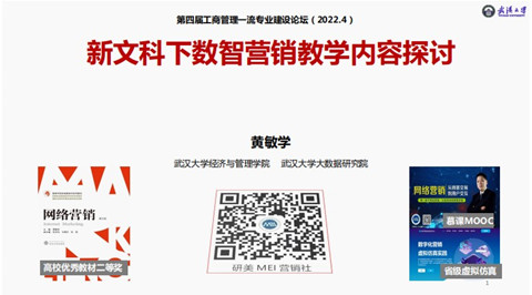 黄敏学教授应邀在专业建设论坛上进行主题发言,发表了以“新文科下数智营销教学内容探讨”为主题的演讲。他从探讨数智时代的营销专业教学面临的挑战出发,指出数智时代的市场营销专业教学的重点应当遵循从认知到能力的培养,并以《网络营销》为例,指出了当代网络营销人才普遍存在的问题。结合这些问题,最终提出培养专业知识扎实、综合能力突出、具有社会责任的高素质交叉复合型的“三创”人才培养要求,认为现代营销教学应当尊重人性,符合规律,既要激发学生“想学”的动机,同时也要提供各种学习机会,采取伙伴式学习共同进步,让学生“有学”。提出构建三元”MOA教学方法、“四位一体”全景式教学资源、“五度”全景式教学方案,并最终总结出一个基于三元内驱式的全场景创新教学数智营销新文科理念。