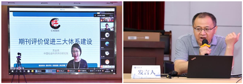以《期刊评价对期刊三大体系建设的促进作用》为题向参会代表阐释了中国社会科学评价院的期刊评价体系,重点强调了中国社会科学评价院的五项评价宗旨:制定标准、组织评价、检查监督、保证质量、科研诚信,并提出学术期刊发展应当注重学科体系、学术体系以及话语体系的构建,最后详细陈述了中国社会科学院期刊评议的一票否决制及吸引力、影响力与管理力三项指标。