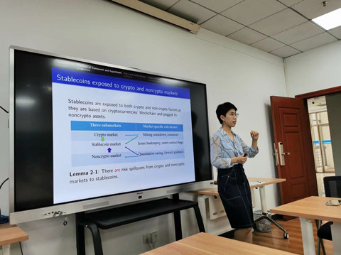 师生带来了主题为“The Crumbling Wall between Crypto and Noncrypto Markets: Risk Transmission through Stablecoins”的学术报告。本次讲座由副院长罗知主持,部分师生参加了此次讲座。