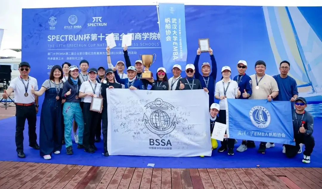 EMBA自强帆船队以非凡的实力与无间的团队合作,闪耀赛场,一举夺得大赛总冠军,荣耀满载,喜讯传扬!