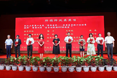十佳教师”称号的杜莉老师、国家级人才项目获得者李青原老师、孙祥老师,国家级教学名师邹薇老师,执教满30周年教师代表叶初升老师,5位老师赴人文馆主厅现场,接受现场荣誉表彰。