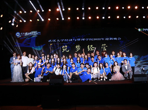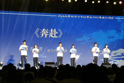 2022年迎新晚会在学院天井拉开序幕。晚会分为缘起珞珈、青春启航、筑梦经管、扬帆百年四个篇章。