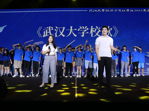 最后在悠扬动人的校歌合唱中,迎新晚会落下帷幕。山水一程,三生有幸,我们越过五湖四海,点点星火齐聚,我们在这里抵达,我们从这里出发。求知在武大,成才在珞珈,愿经管学子胸怀经世济民的理想,不负青春韶华、不负使命担当!