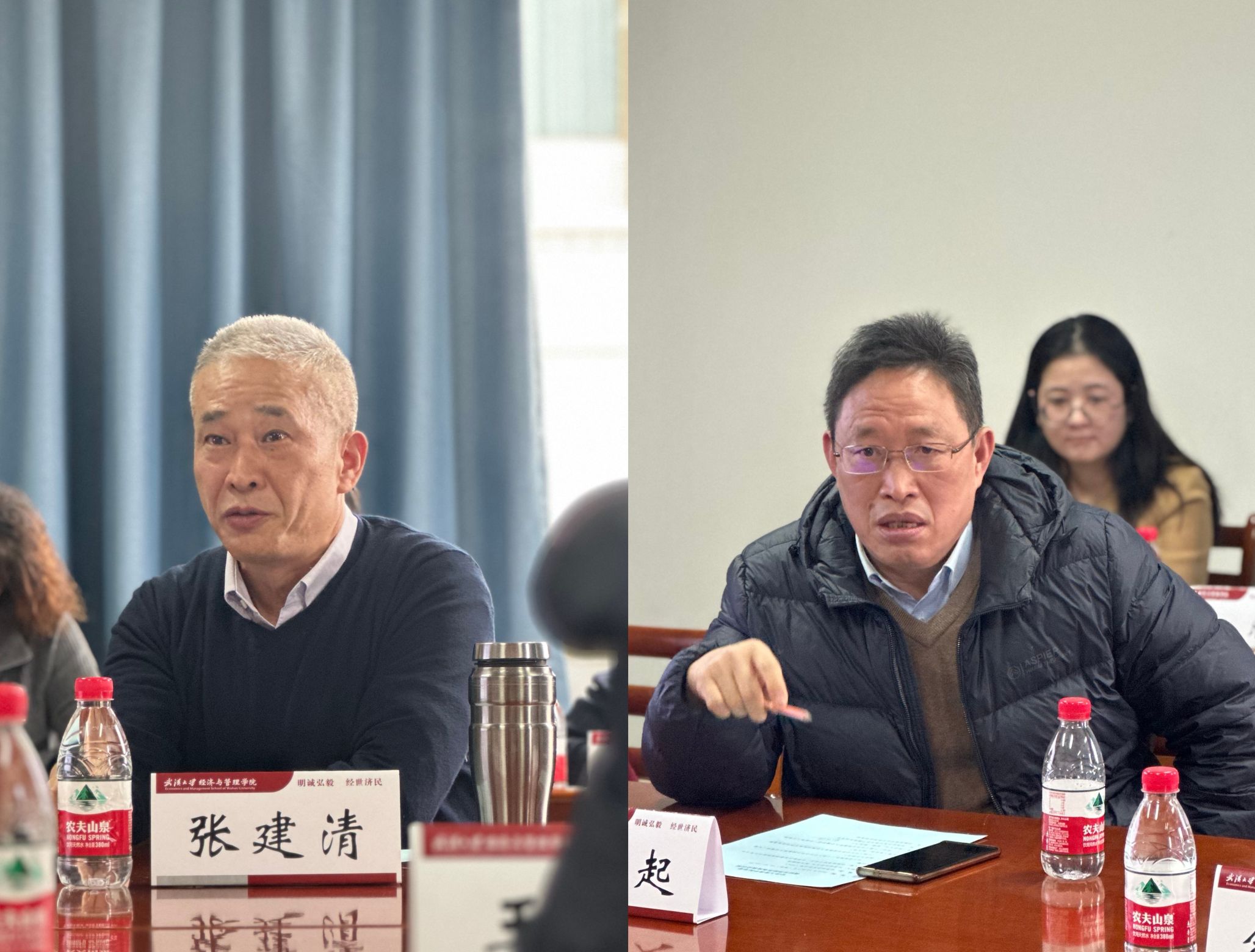 世界经济系教师代表张建清教授谈到了世界经济“中法班”和师资建设方面的问题;刘再起教授着重介绍了他的“万里茶道”研究助力“一带一路”建设的成果;杜莉教授和刘威教授重点交流了中年教师的职业发展相关问题;陈仁静助理教授则重点反馈了青年教师的发展问题。