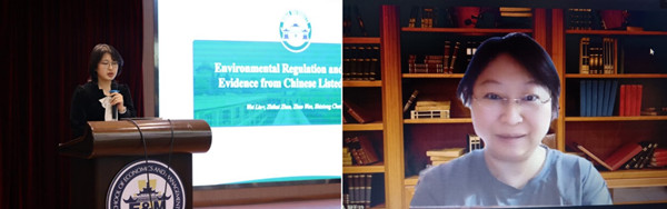 赵智慧分享的论文是“Environmental regulation and OFDI: Evidence from Chinese listed firms”,发表于Economic Analysis and Policy。赵智慧以引言为序,以制度背景为研究起点,在详细的理论分析的基础上向在场同学及老师展现了严谨而详实的实证研究过程,并同大家进一步探讨了影响机制。赵智慧同学在最后分享了本篇文章的发表历程及外审专家给自己的审稿报告,向大家讲解了一些在评审时会被关注到的重点。经济系刁莉老师、《经济评论》编辑彭爽老师进行了精彩点评。