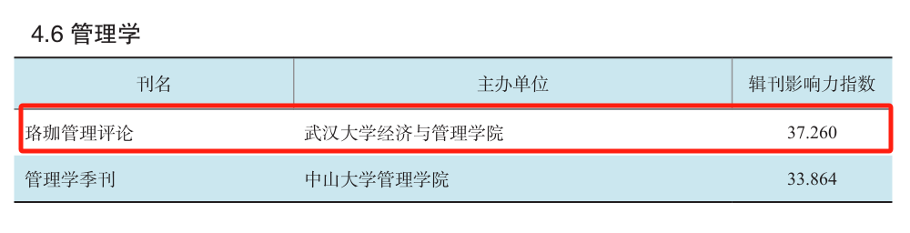 《高影响力学术辑刊评价报告》(2024)(简称报告)以知网收录的1159种学术辑刊作为评价对象,将其划分为18个学科领域,经过严格刷选,有166种辑刊入选;《珞珈管理评论》属于管理学学科领域,该领域仅2种辑刊入选。