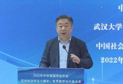 和各会员单位对于中华美国学会工作的大力支持。紧扣本次大会的主题,他就尼克松访华以来五十年中美关系的演变和未来发展趋向分享了自己的见解。最后他结合近期区域国别研究的讨论热潮,对于国内美国研究的深入和中华美国学会的角色提出了期待。