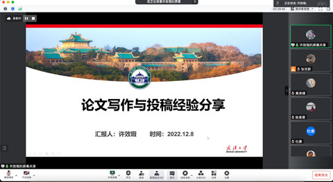 此次学术周增加论文投稿经验的交流板块,许效瑕、陈荣恺、王意通以及王圆缘同学同学们结合自身经历分享了研究选题的确定、阅读文献的方法、投稿期刊的选择及审稿意见的答复等投稿技巧。