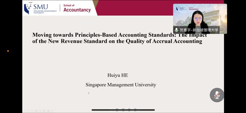 会计系主办的蓝月亮珞珈论坛第109期在线举行。论坛邀请了新加坡管理大学会计学院贺惠宇做题为“Moving towards Principles-Based Accounting Standards: The Impact of the New Revenue Standard on the Quality of Accrual Accounting”的学术论文报告。论坛由学院会计系潘红波教授主持,学院周楷唐、林晚发等多位老师和学生参加了此次论坛。