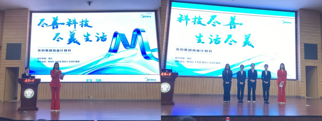 的韩佳轩担任队长,李奕慧、郑茜月、陈琪、苏雯铃为团队成员。团队带来题为“尽善科技,尽美生活”的美的集团商业策划书,基于过去三年业绩指标,为未来市场开拓提供方案。他们深入剖析美的经济现状、面临的市场环境和财务指标,指出公司竞争优势与现存不足,并针对问题提出发展策略,如打造AI赋能的用户交互技术、提高生产线的自动化、数智化、兼顾能源管理与环境管理、扩大海外产能。团队还提出积极扩展线上线下渠道,通过社媒营销、IP联名等,提高品牌知名度。最后,基于上述分析,他们进行了未来三年财务预测,包括总营收、毛利率和归母净利率并预测美的未来将以数智化、低碳化、全球化加速向智能家居、工业互联的科技集团跃迁。