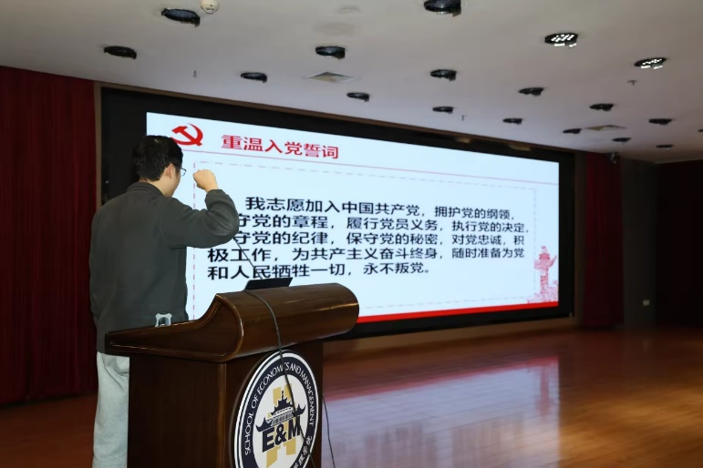 在教师第三党支部张培老师的领誓下,全体党员重温入党誓词,以庄严宣誓强化党员使命担当,为活动注入红色动能。