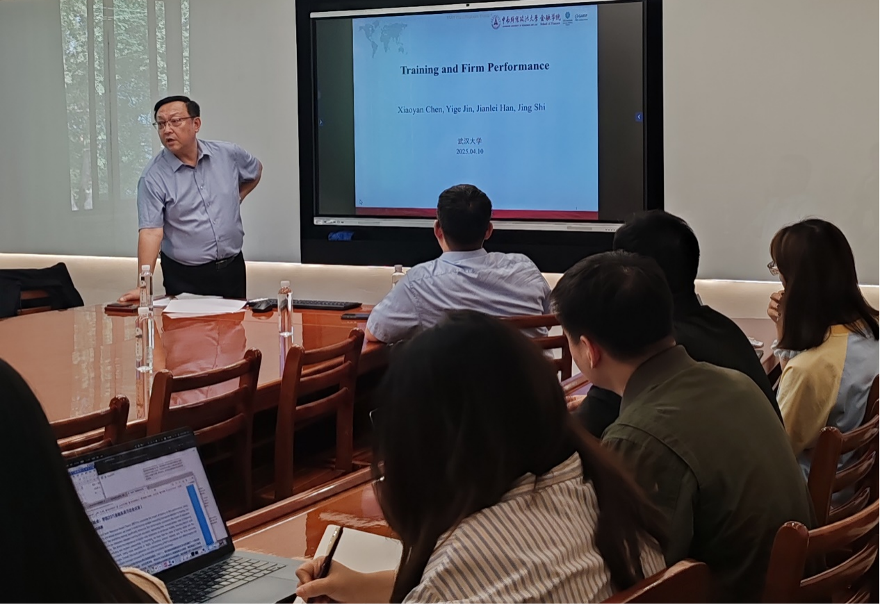 4月10日下午,珞珈经管发展论坛第105期在学院顺利举行。中南财经政法大学石劲教授应邀作为主讲嘉宾,围绕其最新研究成果“Training and Firm Performance”展开精彩分享。学院李斌、李青原、潘红波、沈思晨等多位老师及硕博研究生积极参与,并就研究内容进行深入探讨与交流。