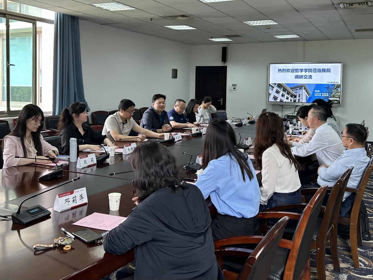 4月16日上午,哲学学院党委副书记严璨、副院长黄超、陈蓓等一行10人来学院调研交流,此次调研主题为硕士专业学位点建设。学院副院长刘林青以及保险系、会计系、研教办相关负责人参加会议。会议由学院党委副书记李好主持。