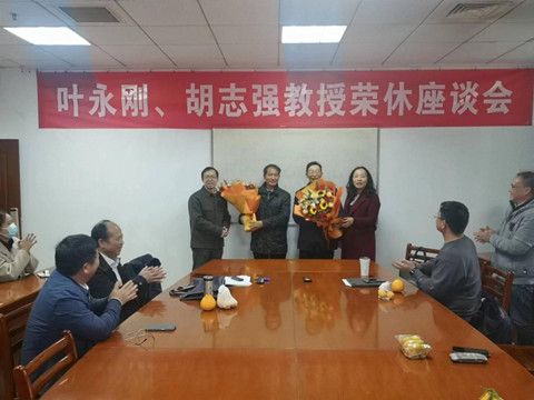 姜星莉和聂军代表学院向叶永刚教授、胡志强教授颁发了荣休纪念品。