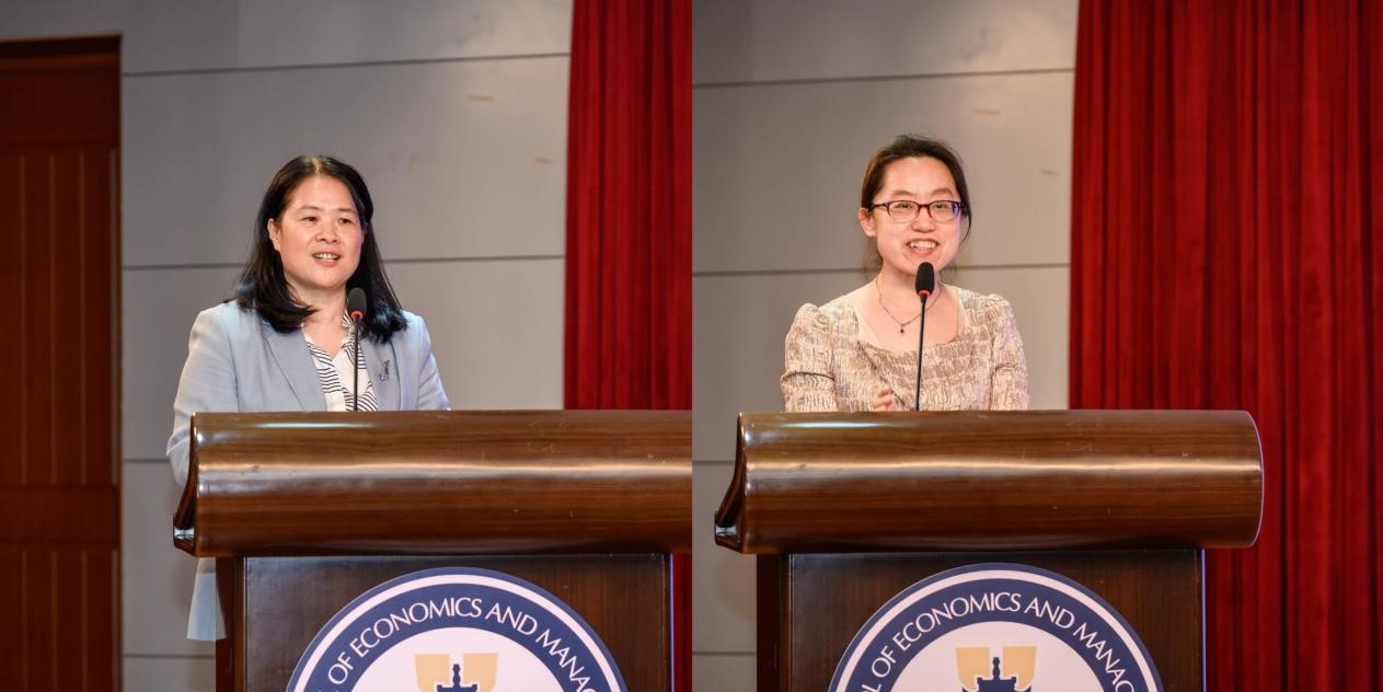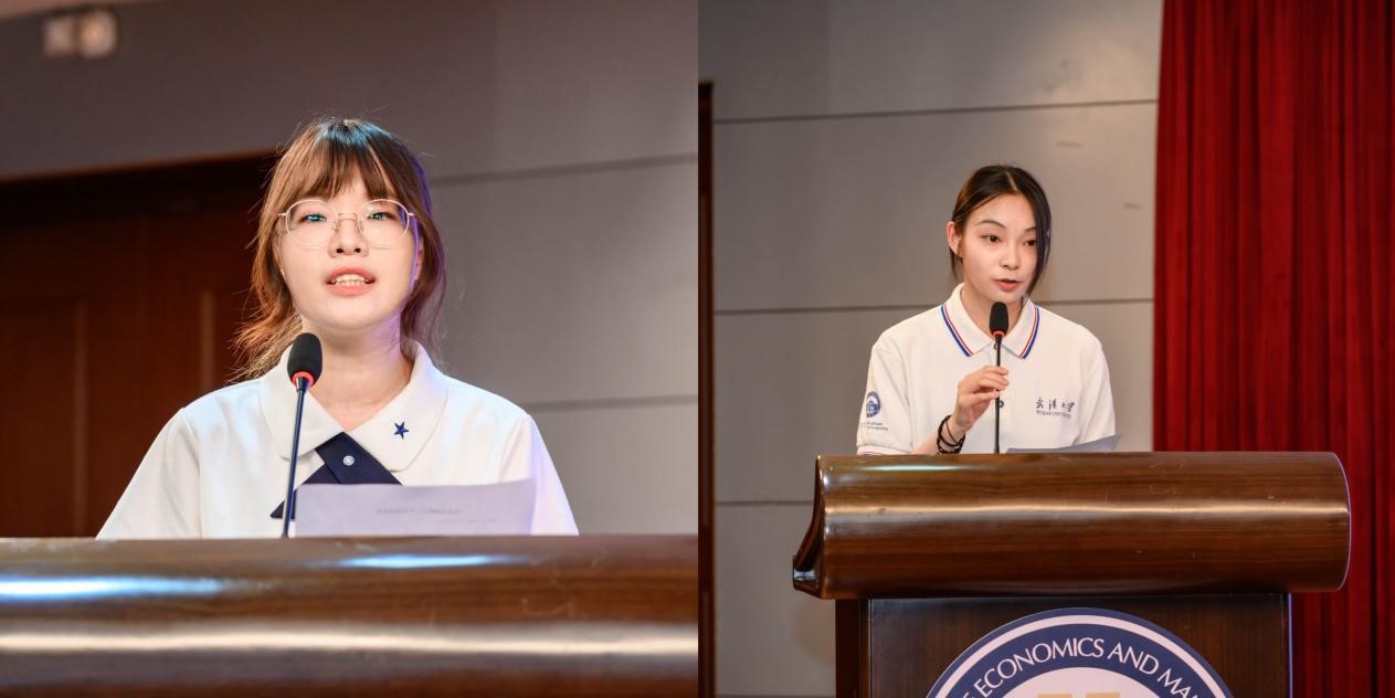 研究生代表沈湘和本科生代表彭芊韵在颁奖后的感言中表达了对学院和营销专业的深深感谢。她们的发言充满了对知识的渴望和对未来的憧憬,展现了海棠书屋