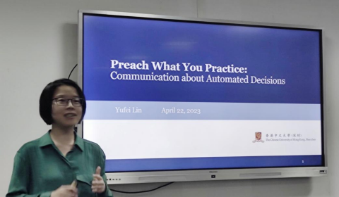 林雨菲老师对其研究“Communication about Automated Decisions”进行了展示。自动化决策(ADM)系统越来越多地用于高风险决策,为了回应人们对自动决策系统不透明性的日益关注,文章建立了一个模型来研究解释性信息的提供如何影响自动化决策的透明度,从而影响利益相关者的满意度和决策的公平性。