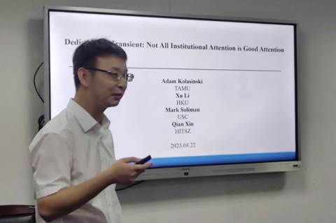A321教室举办。本次论坛由学院金融系主办,沈思晨老师主持了此次论坛,来自香港科技大学的熊琰老师、厦门大学的姚文韬老师、南方科技大学的杨世杰老师、哈尔滨工业大学(深圳)的辛乾老师、首都经济贸易大学的郑伟男老师、香港中文大学(深圳)的林雨菲老师、上海科技大学的周彤老师和海棠书屋