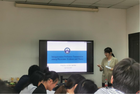 薛莲副研究员报告了论文“Intergeneration preference transmission among physicians:evidenceand theory”。从日常观察中可以清楚地看出,医生的行为与一般人群的行为是不同的,医生具有利他性(altruism)。这篇文章试图回答两个问题:医生的父母与自己之间是否存在代际偏好传递?疫情等外生冲击又如何影响医疗市场供给侧的利他偏好均衡水平?通过理论模型和试验,文章发现:学生及其父母代际利他偏好传递的一致性证据。