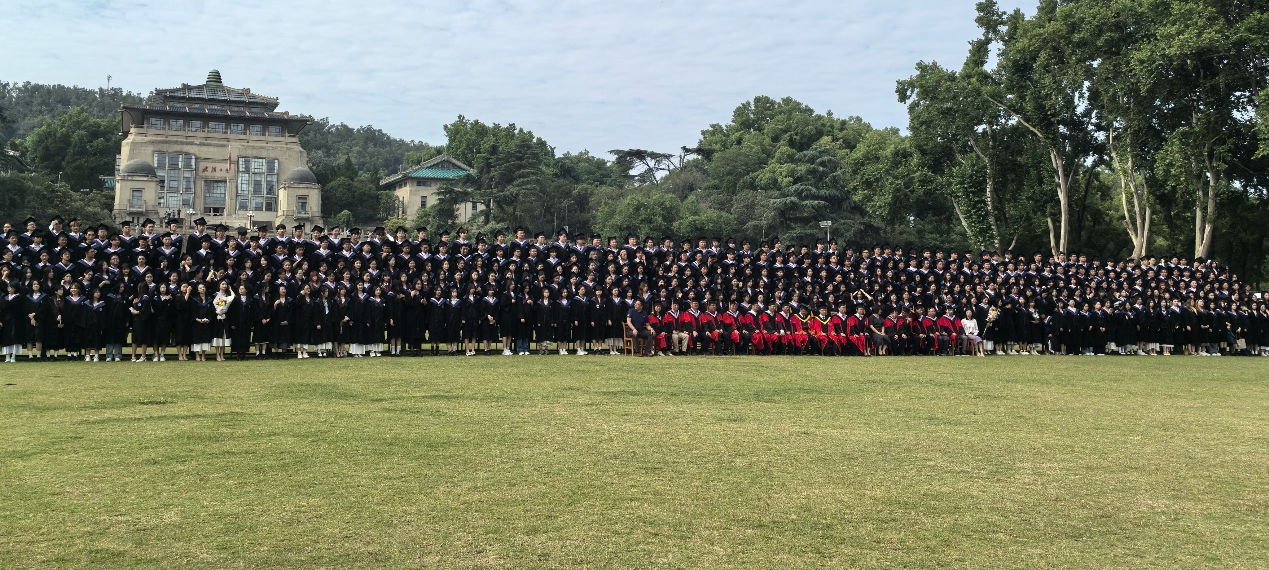 在辅导员老师们的精心组织下,学校与学院领导、导师代表们依次就座,全体毕业生队列整齐,‘咔嚓!’一声,一张承载着数千个梦想与祝福的全家福就此定格。镜头里,是学子们灿烂的笑靥,是师长们饱含欣慰与期许的目光。这不仅是对数载寒窗的完美注脚,更是对珞珈山下青春岁月最珍贵的典藏。