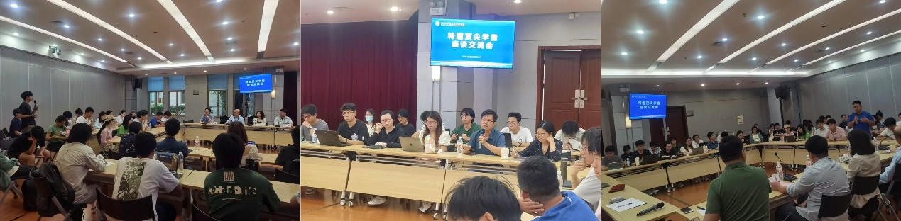 之后,会议进入自由交流环节。当教科书和文献里的学术名家亲临现场、与同学们面对面时,大家倍感振奋,争相举手提问。交流内容广泛而务实,既聚焦学术发展,又关切申请实务细节,还深入探讨了生涯规划。现场互动频频,掌声阵阵,也引发同学们对学术追求与人生价值的思考。