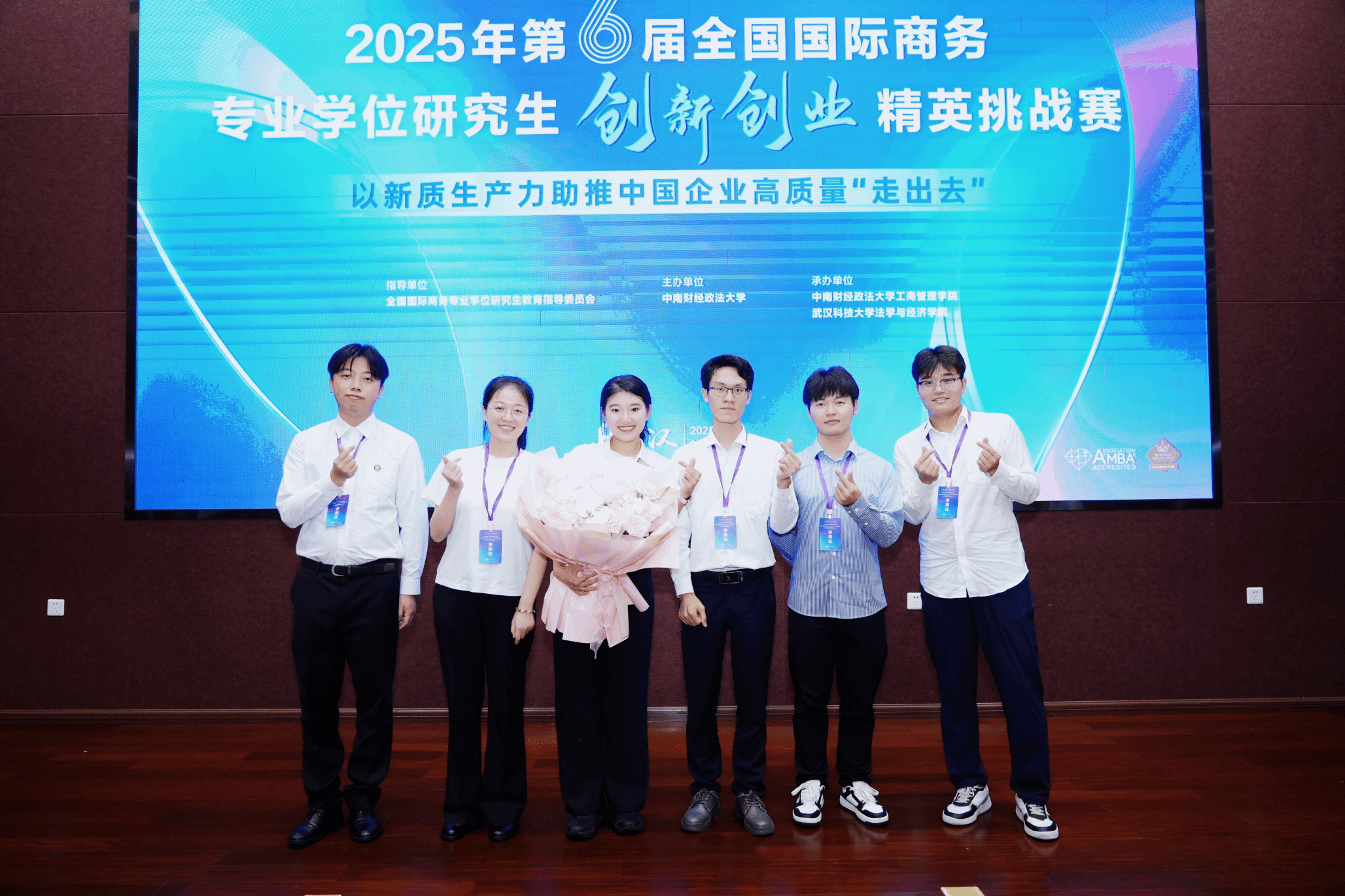 2024级国际商务专硕、2023级国际贸易学硕和管理科学与工程学硕6名研究生组成的“从容应队”荣获大赛一等奖。郭凛、张天顶两位老师获得优秀指导老师奖。