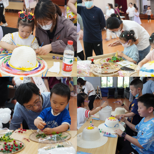在趣味横生的室内亲子休闲游园活动,家长和小朋友们共同绘制草帽、制作绿豆糕、种植多肉盆栽、品尝梅子茶、进行芒种DIY,寓教于乐,寓学于趣。小朋友在动手制作的过程中感受“芒种”时节风俗,感受中华优秀传统文化的魅力。