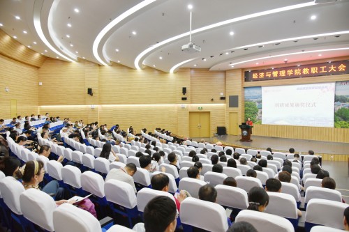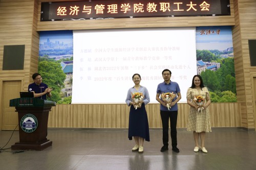 姜星莉在总结讲话中,代表学院衷心祝贺所有获奖老师和新任职干部,感谢各位老师为学院事业发展付出的辛勤劳动,并热烈欢迎新加入经管大家庭的老师们!她深情地说,老院长周茂荣教授在回忆录里写道,在1999年经济、管理学院合院时,学院党政领导班子就提出要力争使现有的每个学科都能得到发展,让广大教职工均有“用武之地”,对学院具有“归属感”和“荣誉感”,使学院成为一个“值得为之奋斗的学院”。这也是我们今天隆重召开表彰大会的意义。