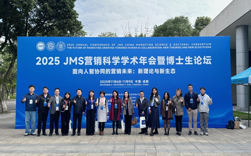 11月6日-9日,学院市场营销与旅游管理系黄敏学、曾伏娥、徐岚、孟陆等教授带领多名博士研究生赴西南财经大学参加2025JMS营销科学学术年会。本次年会以“面向人智协同的营销未来:新理论与新生态”为主题,汇聚国内外营销学界知名专家学者、行业精英及高校师生代表,通过主旨报告、平行论坛、博士生学术研讨等形式,围绕营销科学学术前沿议题展开深度研讨与思想碰撞。
