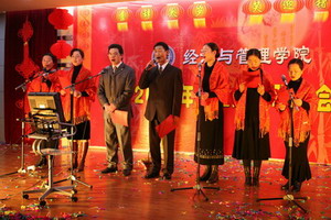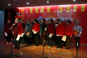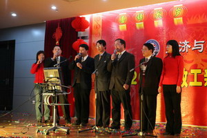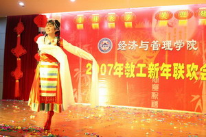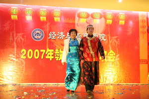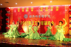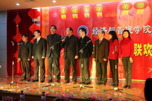 12月29日下午,海棠书屋 张灯节彩、喜气洋洋,学院教工活动中心内欢声笑语、座无虚席,2007年教工元旦联欢会在这里隆重上演。校党委书记顾海良、副校长吴俊培、校工会主席方世平、全体学院领导和全院教职工参加了本次盛会。