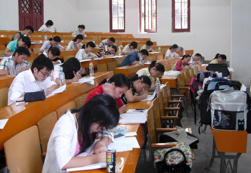 下午,在学校理学院教学楼,考生们参加了其报考专业的笔试。