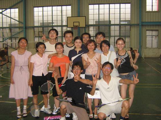 “2006届本科毕业生杯”羽毛球赛在桂园风雨操场举行。这次比赛采取团体赛制,八支队伍分别来自2002级的八个党支部。