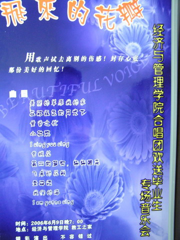 为了搞好本次欢送毕业生专场音乐会,合唱团全体团员在紧张的学习之余挤出时间认真排练,本次专场音乐会一方面为毕业在即的同学表达了学院对他们的美好祝愿,另一方面也是合唱团继去年金秋艺术节之后的一次大型演出活动,是对合唱团常规性训练的一次检验。据团长田静茹同学介绍,合唱团将于6月16日晚参加学校欢送毕业生歌会。