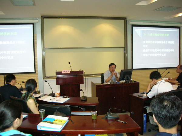 党委书记尤传明、副院长李燕萍的陪同下,走进了EMBA的课堂,为2006级70名学员带来了一场题为《市场经济的历史与现实》的精彩讲座。