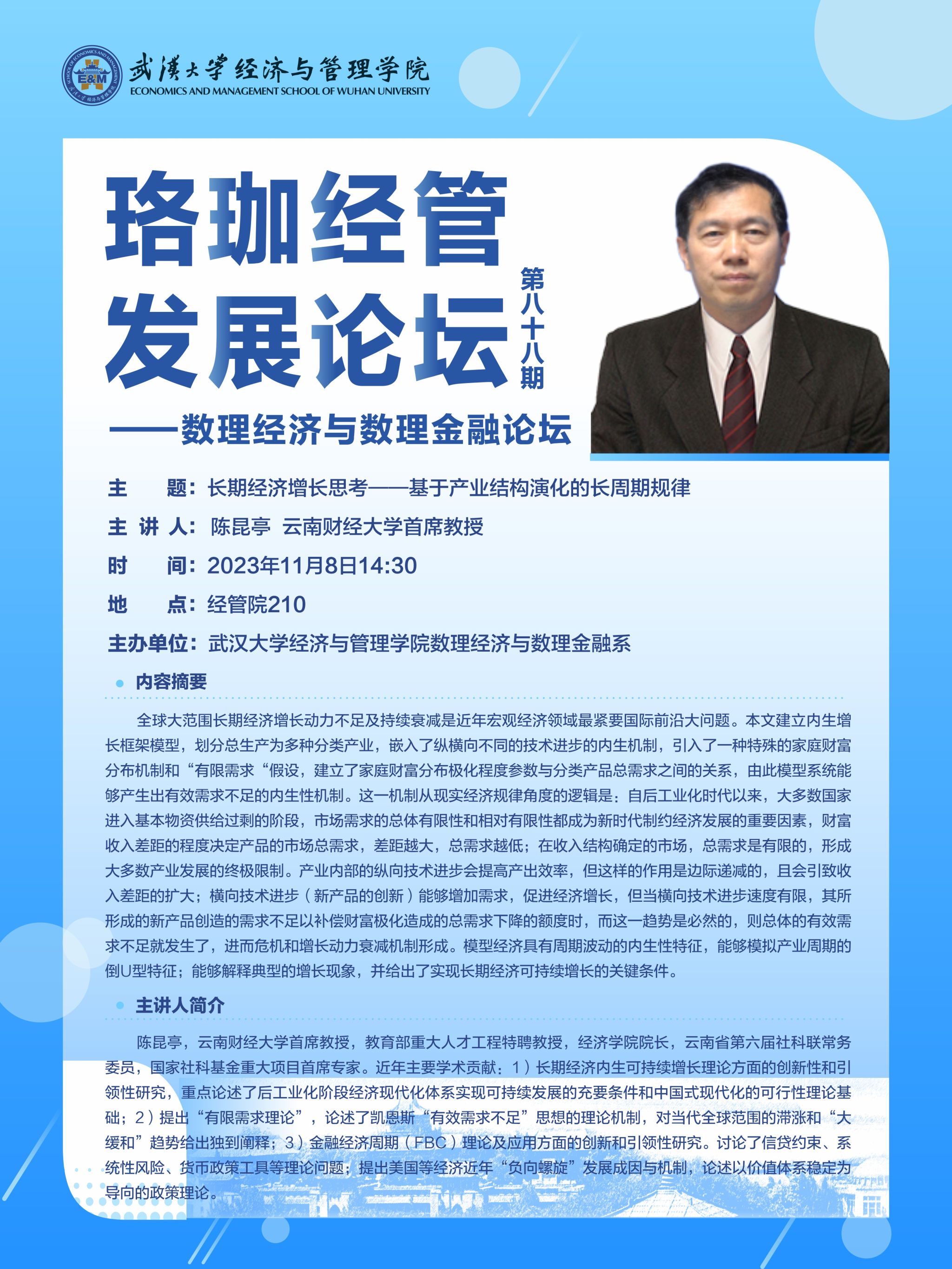 珞珈经管发展论坛第八十八期——数理经济与数理金融论坛