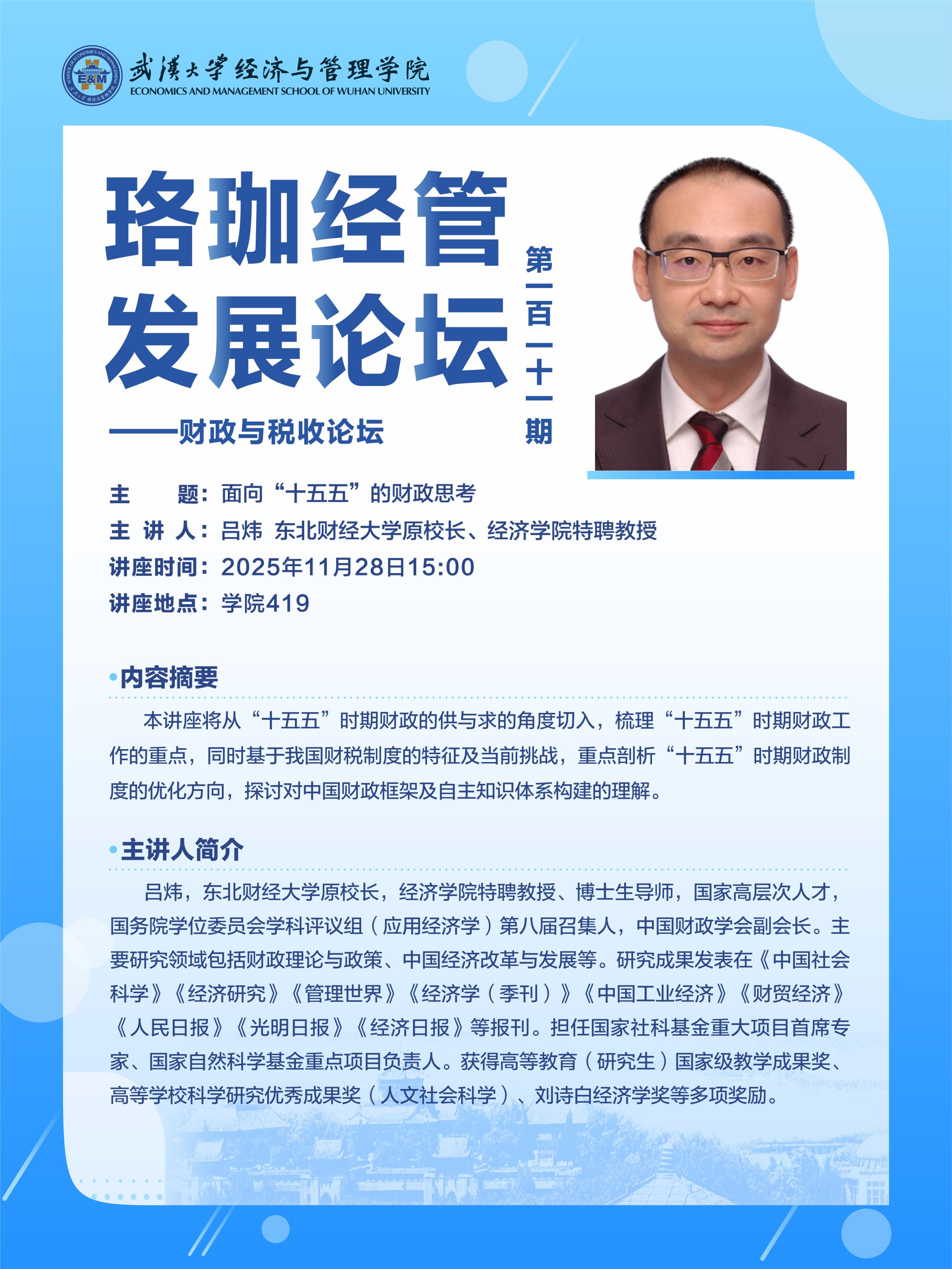 讲座预告|珞珈经管创新论坛第139期——财政与税收论坛