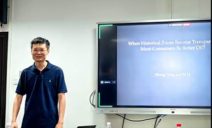 本研究强调披露产品历史价格反而会降低消费者福利的意外结果,引起在场师生的深思和探讨。李教授详细耐心地解答相关问题,与会师生均深受启发。