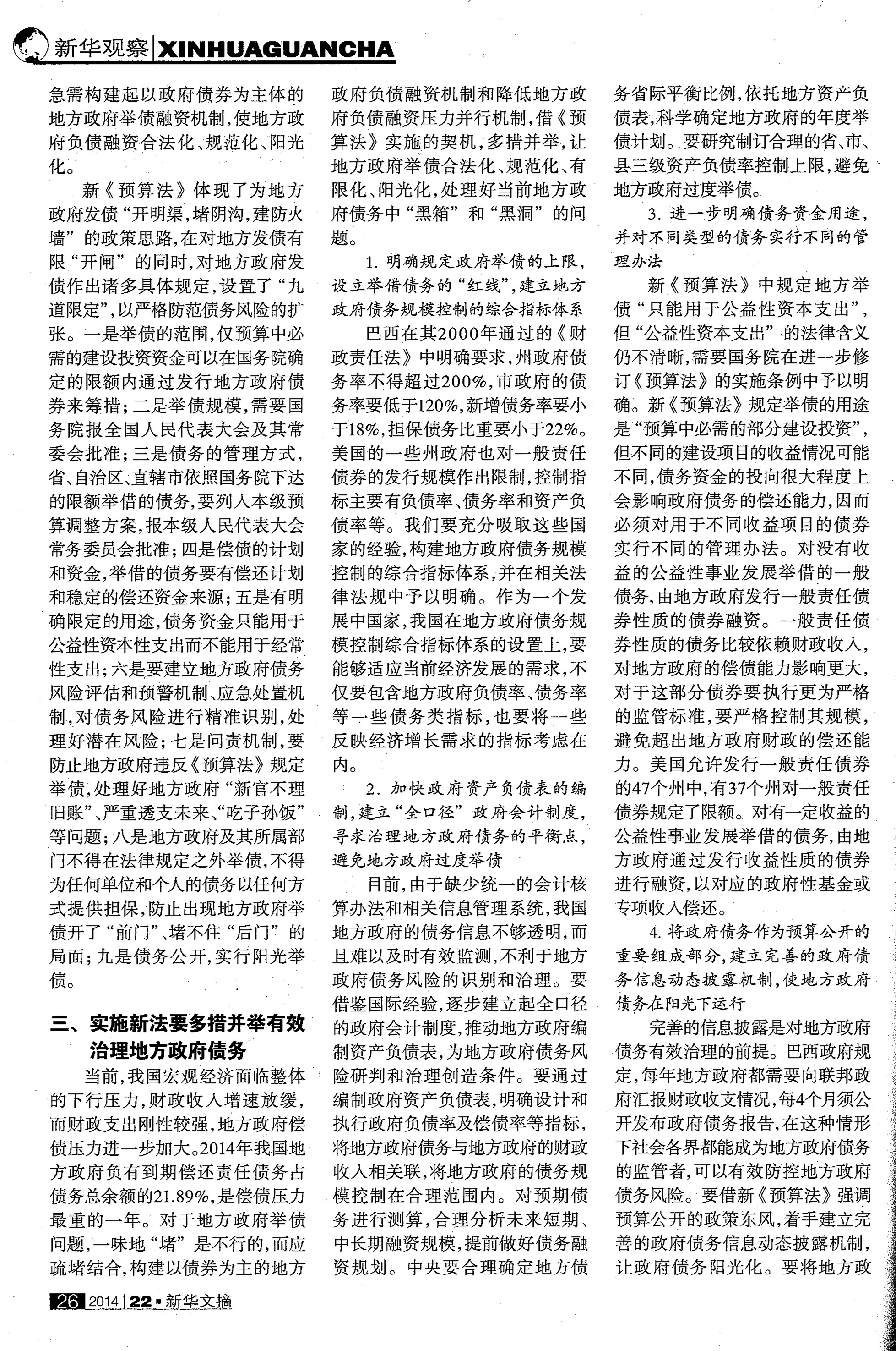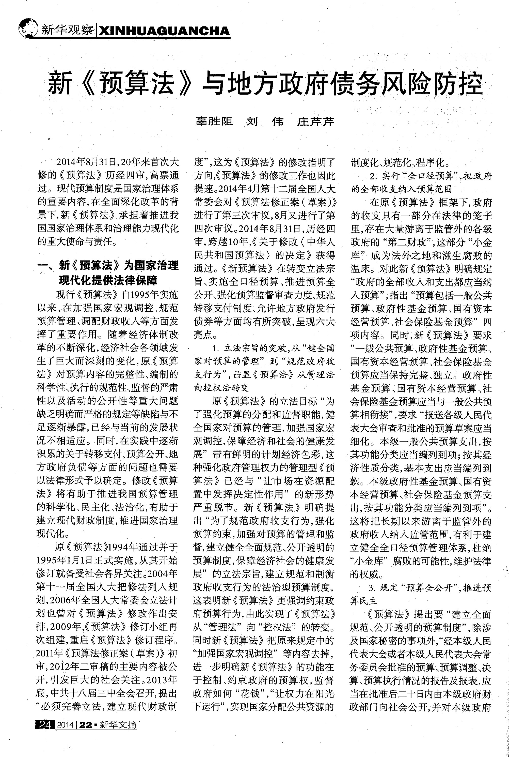辜胜阻 刘伟 庄芹芹:新《预算法》与地方政府债务风险防控