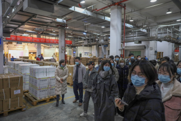 在冷库区,储存的药品达近6000余件;各类需要冷藏的药品都有各自的温控需求,仓库的温控系统能保证在各个库类的药品的储存温度需求得到满足;与此同时冷库区专属的出入库作业的电梯也在温控系统运作的范围内,实现整个作业流程的控温化。这让我们看到了国内物流人精益求精为满足客户需求和保证货物的质量所做出的努力。在相继参观了堆叠仓库、拆零区、整件区等作业区域;同学们在实际看到书本上的内容时都感到十分亲切,收获颇丰。