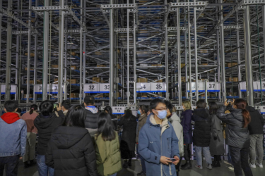 在自动化立体仓库观摩先进设备运作