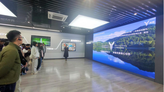 随后,全体师生来到岚图汽车进行参观。岚图汽车创立于2019年,是东风汽车旗下的高端智慧新能源品牌,致力于为用户提供“可靠”和“豪华”的出行体验。在车间的展厅内,师生们听取了岚图汽车的品牌历史与背景、品牌理念与价值观、技术创新与研发、品牌战略与发展规划等方面的详细介绍,了解了岚图汽车凭借东风汽车集团多年的造车经验和技术积累所拥有的竞争优势。