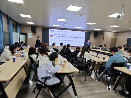 龚红教授以“陪伴同学们成长的咨询师”身份,通过精心准备的PPT和讲义,引导同学们认识专业与自我,并提出个性化发展建议,鼓励同学们迈向更高层次。