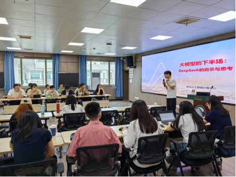 李总以当下热门的AI产品DeepSeek、OpenAI等为切入点,为同学们讲述了人工智能行业的“前世今生”,重点讲解了大模型、算法等人工智能技术相关的知识,从技术角度简要阐释了大模型的工作原理,并分享了自己关于AI未来的一些看法。在互动讨论环节,同学们接连提问,气氛十分火热,谦逊亲和的李总耐心地一一解答。