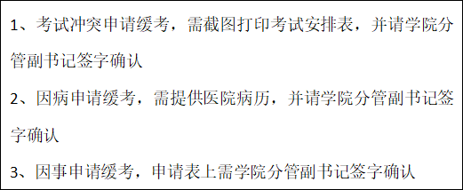 2、因事、考试冲突申请缓考,需提前三天提交缓考申请