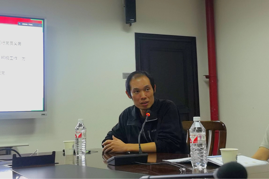 其后,龚老师作为一名受党培养多年的党员干部,向在场的年轻党员们分享了他入党多年的感受和体会。谈及入党初心,龚老师提到了两个人,分别是他的爷爷和导师。龚老师的爷爷作为老一辈的新中国建设者,在国家艰苦建设时期,无私奉献、不讲回报;龚老师的导师卢洪友老师在财政系的初创时期担起大梁,一心扑在学科建设工作上,不辞辛劳,却淡泊名利,只讲责任、不谈荣誉。两位长辈让龚老师对党员的责任与使命有了深刻的认识。在美国的求学经历则让他意识到,强大的祖国是每个中国人的坚强靠山,而在国内,党和国家永远是人民群众最坚强的后盾;在疫情期间,基层党员在防控一线的默默付出让他对党有了更深的信仰和感情。