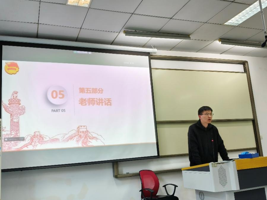 辅导员鲍成志老师提出,团委及各班团支书要认真落实各项团务工作,确保有序组织、高效执行。其次,团支书需要加强班级建设,提高同学们的参与度,增强班级和团委的凝聚力和影响力。最后,针对本次总体国家安全观的学习,鲍老师强调要重视政治安全,引导同学树立正确的政治观念,具备敏锐的政治意识。